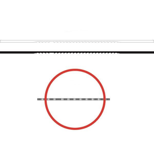 Et hurtigskjærende sagblad for alle typer tre, plast, gips, karbon og horn. Beste kvalitet; tannavstand med stort avstand; veldig lang holdbarhet på grunn av spesiell herding; offset tenner for problemfri kutting av kurver.