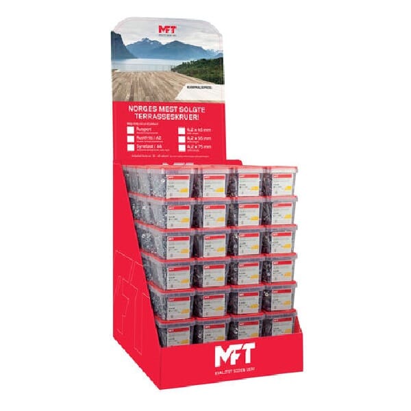 MFT 1000 Ruspert Terrasse skrue til bruk i vanlig trykkimpregnerte terrassebord mot underlag av trevirke.