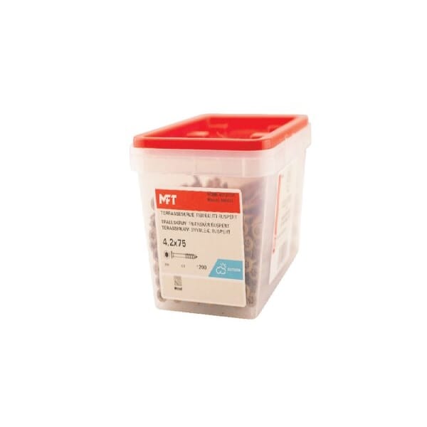 MFT 1000 Ruspert Terrasse skrue til bruk i vanlig trykkimpregnerte terrassebord mot underlag av trevirke.