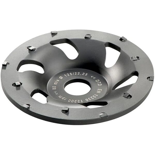 Spesialslipeskål på 125x22,23 mm for sliping av elastiske beskyttelsesmalinger (på myke og harde underlag), lim, tetningsmidler, for å fjerne lateks- og oljemalinger, bitumen, PU/polyuretan, epoksy, elastisk lim, for å frese bort kalk- og gipspuss, for å slipe kunstharpikspuss og hard sementpuss.