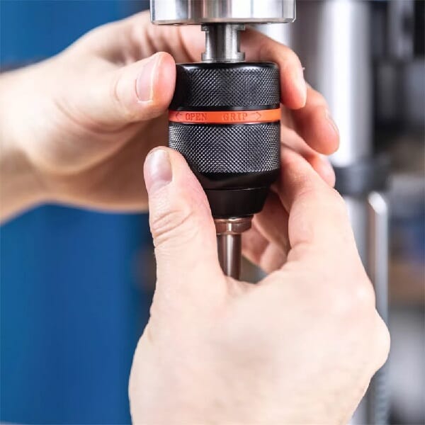 Ja, 5906834901 leveres normalt med en selvspennende chuck av høy kvalitet, noe som gjør bytte av bor betydelig raskere enn med en tradisjonell chucknøkkel.