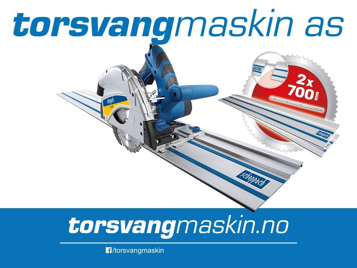 Maks snitt 45grader: 40 mm uten skinne