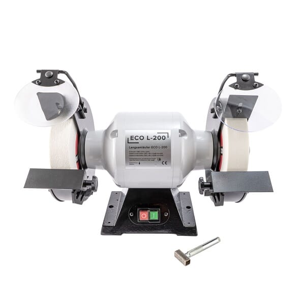 ECO L-200 Slow-speed bench grinder (DDC-L200) er en kraftig og presis benkslipemaskin utviklet spesielt for deg som stiller høye krav til kontroll, finish og levetid på verktøyet ditt. Med lav hastighet på 1.480 o/min er denne slipemaskinen ideell for sliping av dreiejern, HSS-verktøy og annet presisjonsverktøy der varmeutvikling og stålkvalitet er avgjørende.