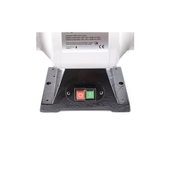 Maskinen er konstruert med støpt maskinfot og robuste komponenter som tåler daglig bruk i profesjonelle miljøer. De medfølgende støpte verktøystøttene gir trygg og nøyaktig føring under sliping. Plexiglass øyebeskyttelse gir økt sikkerhet, og medfølgende diamantdresser gjør det enkelt å vedlikeholde og rette opp slipeskivene for optimal ytelse over tid.
