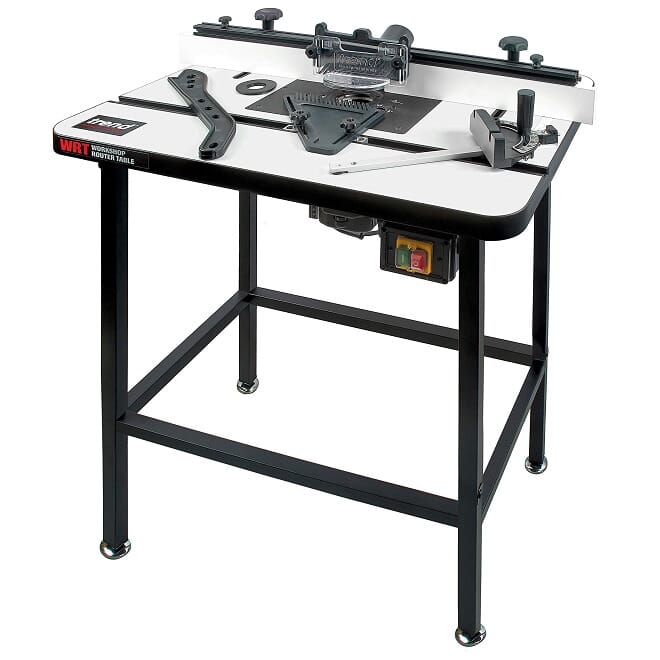 Bordet har mange bruksfordeler som gjør det velegnet til både proffbruk og for den som ønsker kvalitet. Selve toppplaten er i laminert MDF plate, størrelse 804 x 604 x 35mm, høyde fra gulv 890mm. Senterplate i 6,35mm av aluminium med senter hull ø98mm, slik at stor fresestål også kan brukes max diameter fresestål ø98mm. Forberedt for bruk av T11 hurtigmonteringssett. Senterplaten kan justeres presist med hele sju stillskruer og magnet. Platen skrudd til toppen for ekstra sikkerhet. Det følger med to insert ringer; ø31,8 og 67,5mm, slik at senter hullet kan reduseres. Bakre anlegg er justerbart i sleidespor. Guide pinne for bruk med fresestål uten kulelager. 20mm hull for T11 justeringsratt, slik at høyden på fresen kan justeres fra toppen av bordet. Kantfresings innstillinger med 14mm og 2,4mm tykkelse.