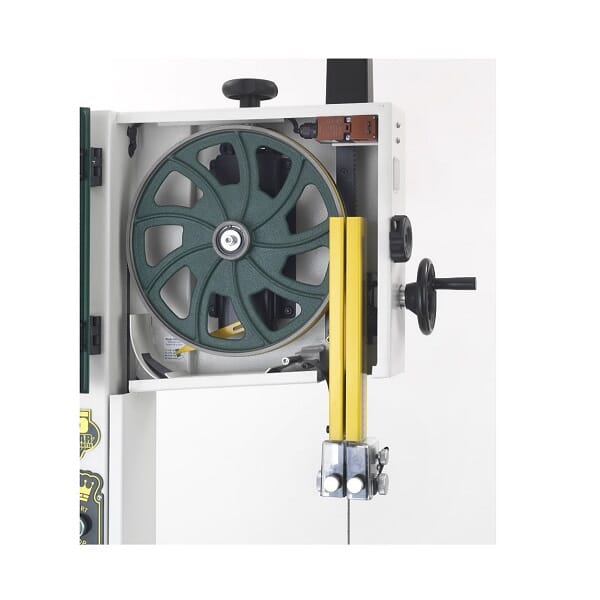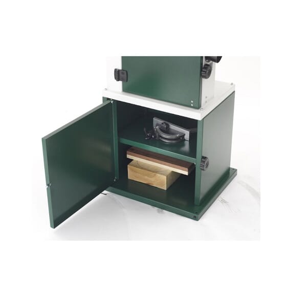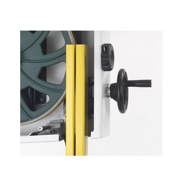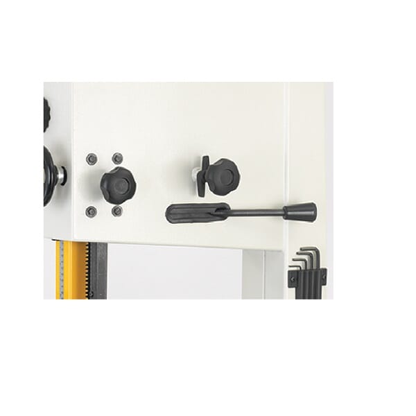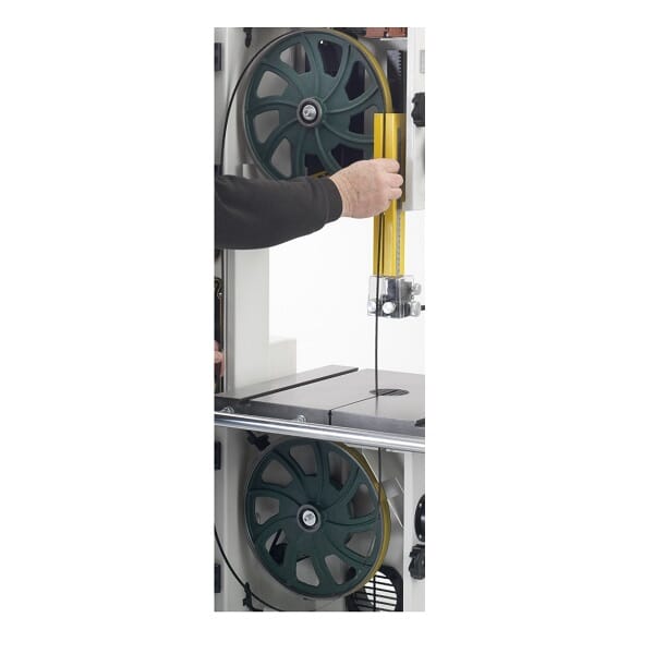 Båndsaghjulene er laget i støpegods og er avbalansert. Tyngden gjør at du får en svinghjulseffekt med økt kraft og moment. Anlegget kan hurtig plasseres både på høyre og venstre side av bladet. Anlegget kan også lett bygges om for tynne emner ved å legges flatt. Mikrojustering av anlegget er mulig og det flyttes enkelt med hurtiglåsen. Hurtigspenning av bladet med håndtak bak på sagen, forenkler bladbytte. Bordet hviler på en kraftig vogge med doble styringer og kan justeres til ønsket vinkel med ett håndtak. Stativet består av et kabinett, hvor også ekstra blader og tilbehør kan oppbevares.
