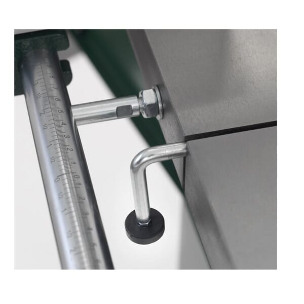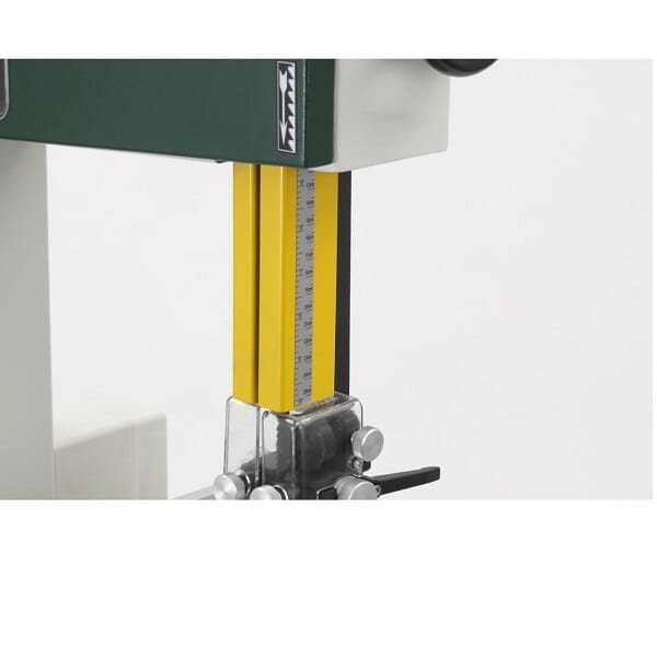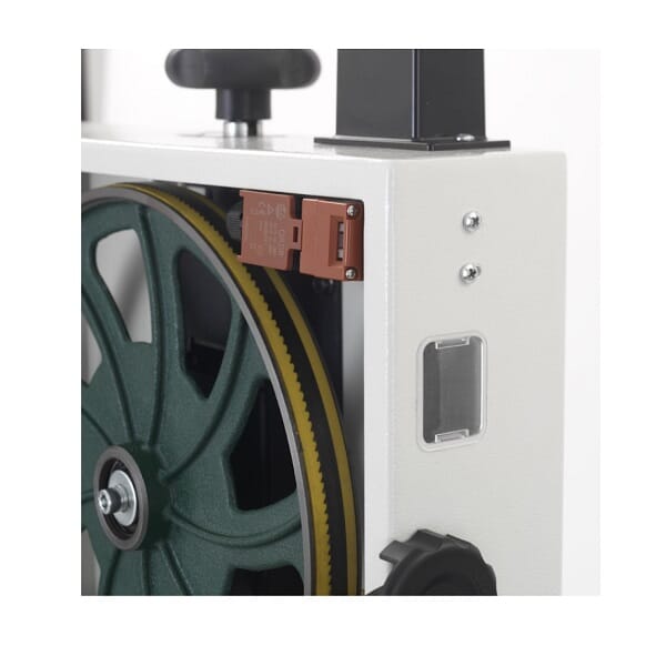 Bladstyringen har målsatt høyde for presis innstilling. Anbefalt høyde over emnet er ca 1-2 cm. Inspeksjonsvindu både oppe og nede for å sjekke at bladet ligger korrekt på båndsaghjulene.