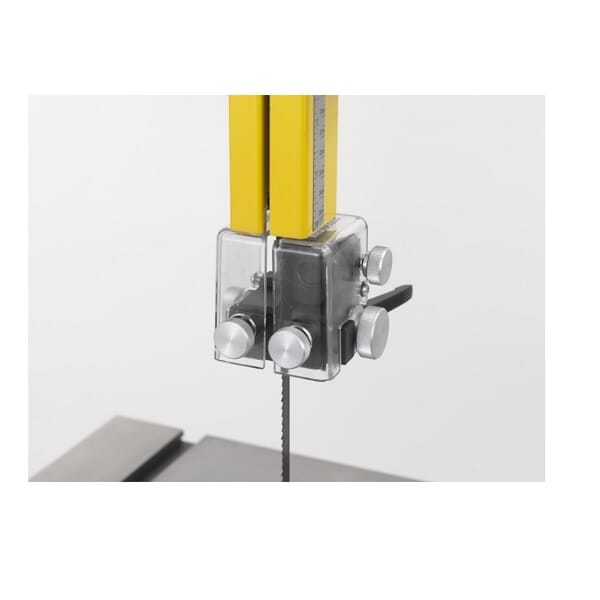 Sabre-serien har noen ekstra fordeler fremfor Premium serien med båndsager: En av disse er anlegget som har mikrojustering og kan derfor presist justeres til ønsket sagbredde. Bladstyringen på SABRE 300 er en nyutviklet, rettere sagt en oppgradert versjon med glideblokker i høykvalitets 01 stål. Dette stålet avgir fort varme i motsetning til keramiske alternativer. Bladstyringen gir presis styring av bladet og med blokkstyring er det en større kontaktflate mellom styringen og bladet. Ofte er denne type styring brukt på større sager, men nå også tilpasset Sabre. Justering av bladstyringene skjer uten bruk av verktøy og kan derfor gjøres raskt og effektivt.