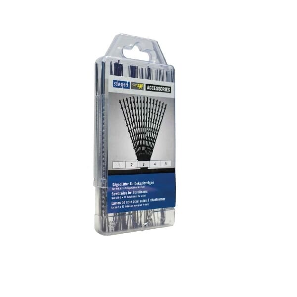 Settet inneholder 5 forskjellige bladtyper á 12 stk, totalt 60 sagblader – slik at du alltid har riktig blad for jobben. Bladene har universalfeste (uten krysspinne), noe som gjør dem kompatible med de fleste kontursager og figursager fra Scheppach og andre merker.