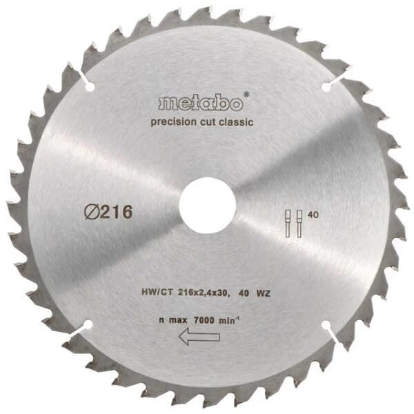 Metabo 216x30 Z40 WZ 5° sagblad til kapp- og gjæringssag.