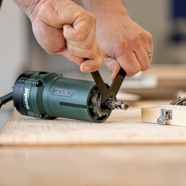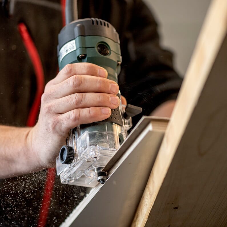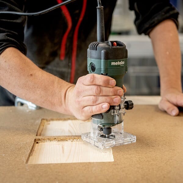 En-hånds kantfreser med kraftig motor.