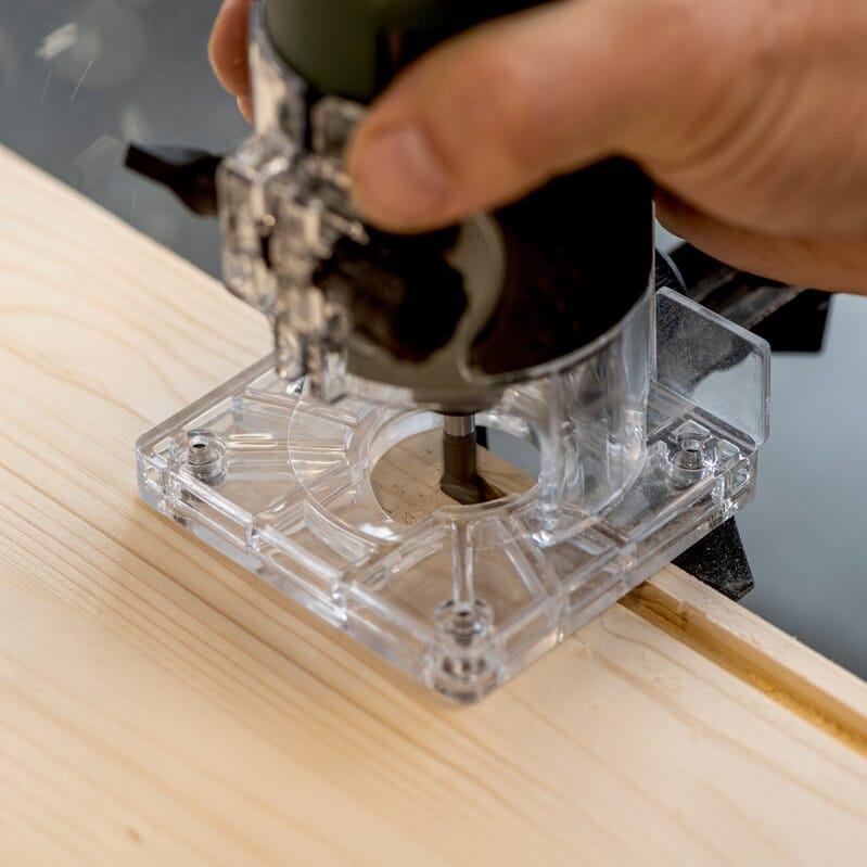 Transparent grunnplate for maksimal sikt til fres og arbeidsstykke